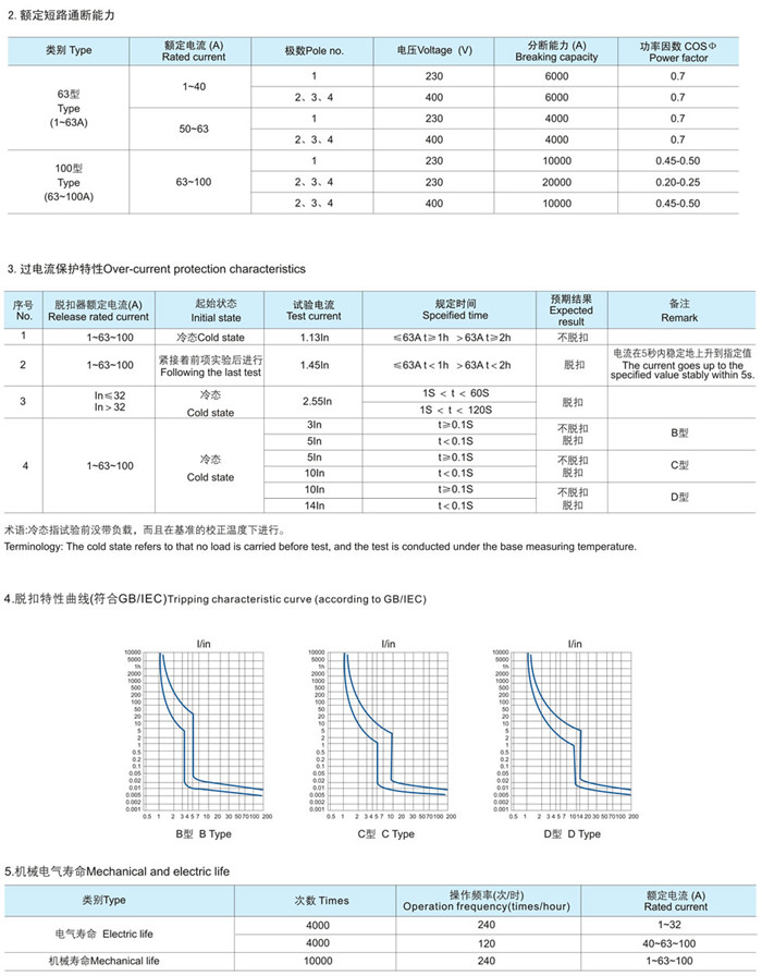c.按瞬時(shí)脫扣的型式分:B型(3-5In)、C型(5-10In)、D型(10-14 In)。