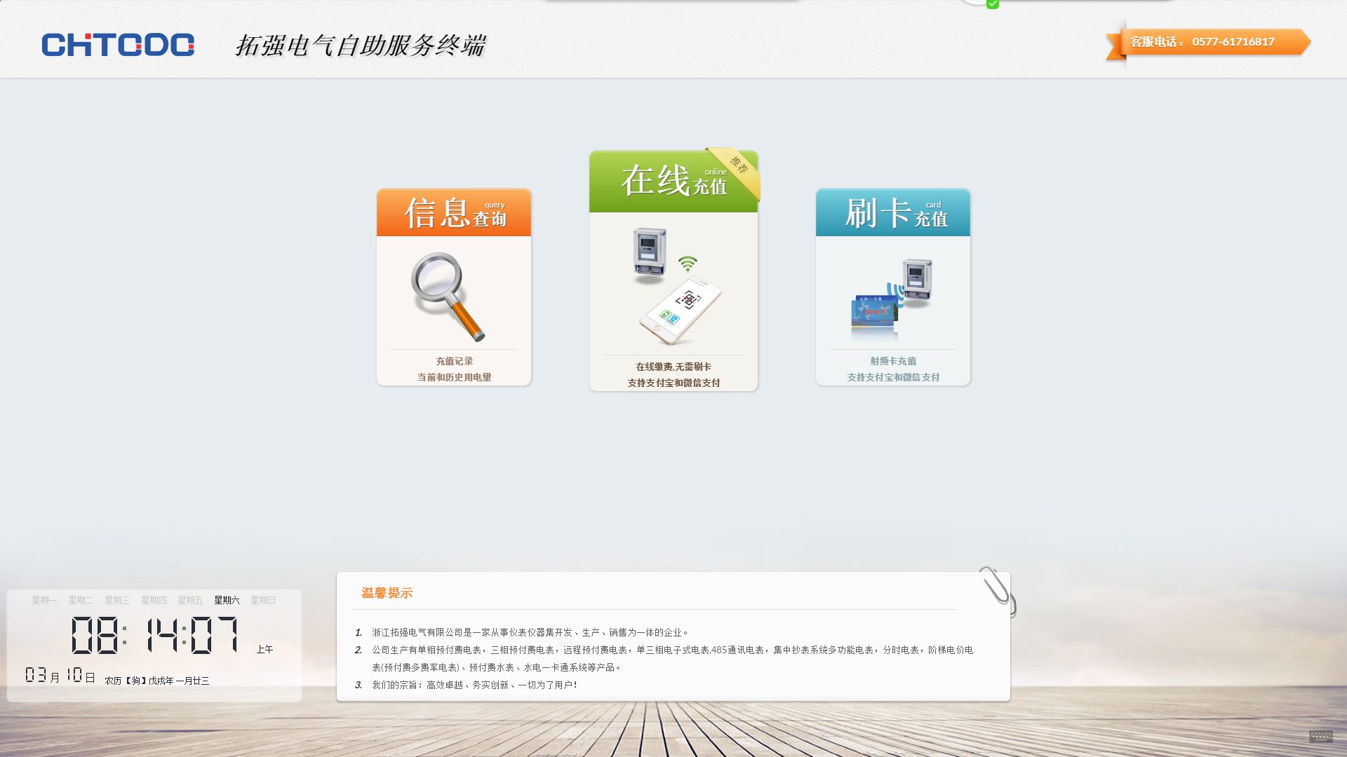 刷卡充(chōng)值:可支付寶掃(sǎo)描(miáo)二維碼付款,將電量數(shù)據充值到購電卡內(nèi),然後(hòu)將(jiāng)購電卡(kǎ)拿到電(diàn)表上刷卡充值(zhí)。(支持打印充值(zhí)小票)