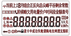 若囤積限量設置為最大值9999元時,則用戶一次最多(duō)購(gòu)電量為9999元。而當本(běn)次購電電量與表中剩餘電量之和大於囤積限量時,電表顯示“009999.00”,卡內購電量不會寫(xiě)入表內(nèi),待剩餘電量和本次購電量之和(hé)小於囤積限量時(shí),再(zài)插購電卡,本次購電量才被讀入。