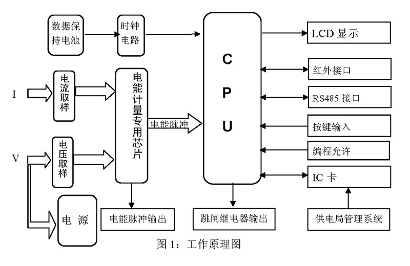 由計算(suàn)機(jī)管理信息係統,通過IC卡(kǎ)讀寫(xiě)器,寫入一定(dìng)電量和監控要求的IC卡輸入表內(nèi)微處理器係統(tǒng),經(jīng)CPU運算後,提供顯示(shì)、報(bào)警、切斷(duàn)狀態信號。