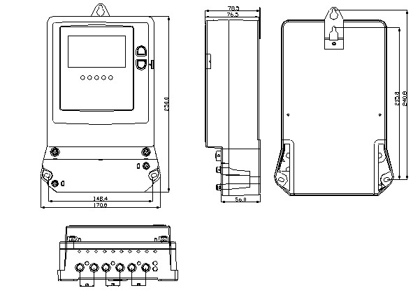 2.3.2電能表安裝在室內(nèi)通風幹燥的地方(fāng),用三個螺釘固定,按下圖3所示的安裝(zhuāng)尺寸在底板上先鑽好孔,底座應(yīng)固定在堅(jiān)固、耐火、不易震動的物體上,確保安裝使用安全、可靠,在有汙穢或可能損(sǔn)壞電表(biǎo)的場所,電能表應(yīng)用保護櫃保護。