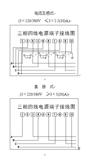 2)三相四線電源端子接線(xiàn)圖