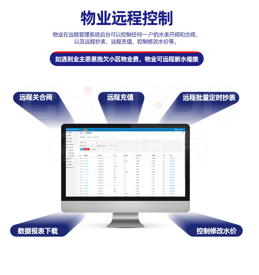 -遠傳遠控(kòng)水表,可通過係統軟件實現預付費功能,開/關閥操作(zuò)。